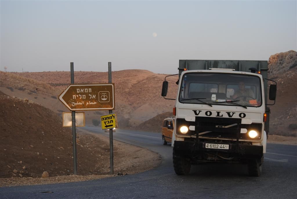 Второстепенная дорога, спускающаяся от Тубаса в Иорданскую долину. Сразу после арабской деревушки Таясир - израильский пост. Здесь проверяют всех, едущих в направлении долины и поселений Мехола, Рои и Бекаот. По сути, мы выезжаем аккурат из зоны А, поэтому ожидаем множество вопросов со стороны военных на тему того, как мы там оказались. Быстренько снимаем листочки "Русия аль'яум", ибо это для палестинцев мы российские журналисты, а для израильской армии - глупые заблудшие туристы из центра страны. Таковы правила игры. Подъезжаем. Там практически нет других машин, исключая пару палестинских микроавтобусов, стоящих на обочине и ждущих у моря погоды. Солдаты нас увидели издалека, стоило нам подъехать, как те оценили наши недостаточно смуглые физиономии и задали предсказуемый вопрос "Вы откуда едете?". Ответ наш их несколько удивил "Из Кфар-Сабы". Те нахмурились "Но эта дорога ведет из Тубаса и Дженина, там палестинская зона А, как вы туда попали?". Мы опять изображаем крайний идиотизм "Ой, а мы тут по GPS смотрим, нам так показывает кратчайший путь в Тверию...". Военные не знают что делать дальше. Советуются. Потом проверяют наши документы (российский паспорт убран подальше, взамен предъявлен израильский ID) и отпускают с миром. Ура, снова пронесло!