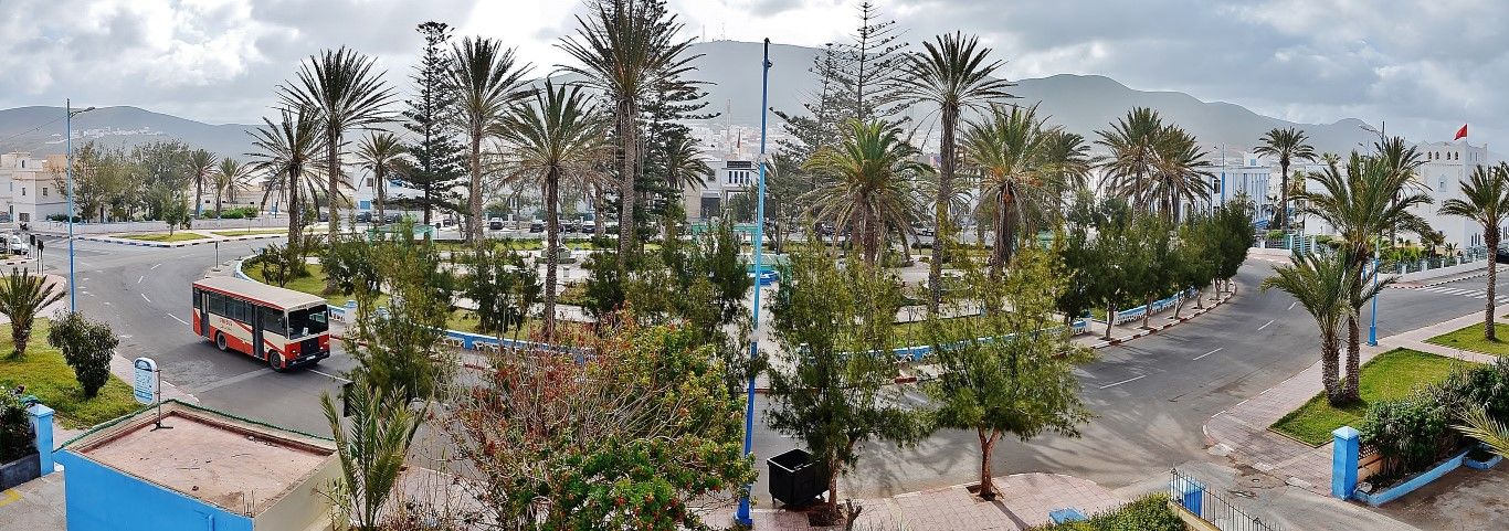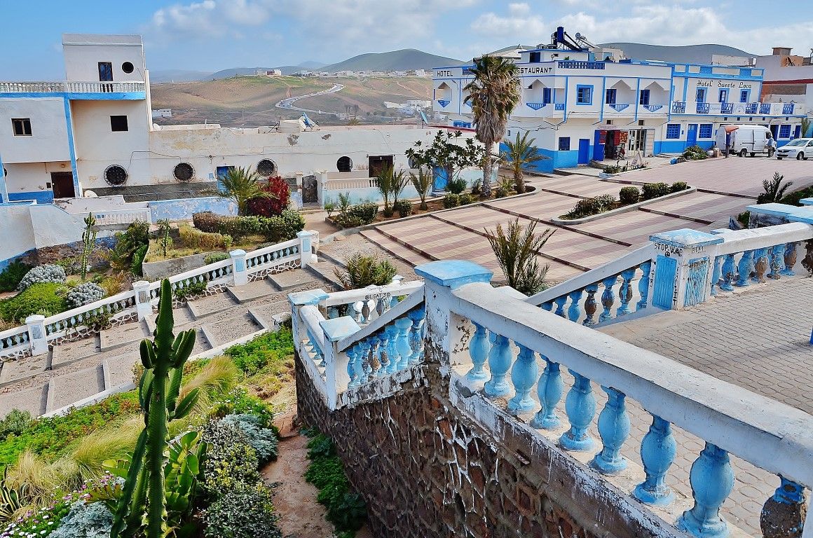 Через эту пластилиновую местность мы гнали весь световой день и в итоге добрались до побережья Атлантики и Сиди-Ифни. Утром с нашего балкона открылся вид на главную площадь города -