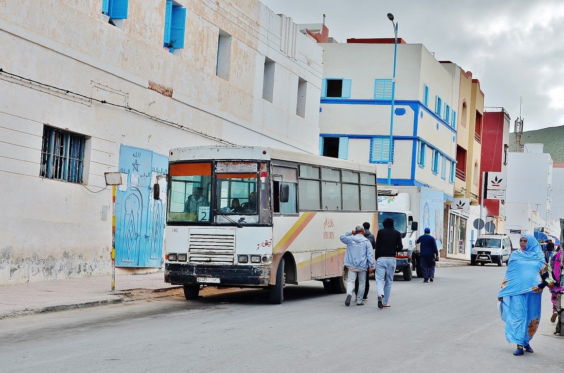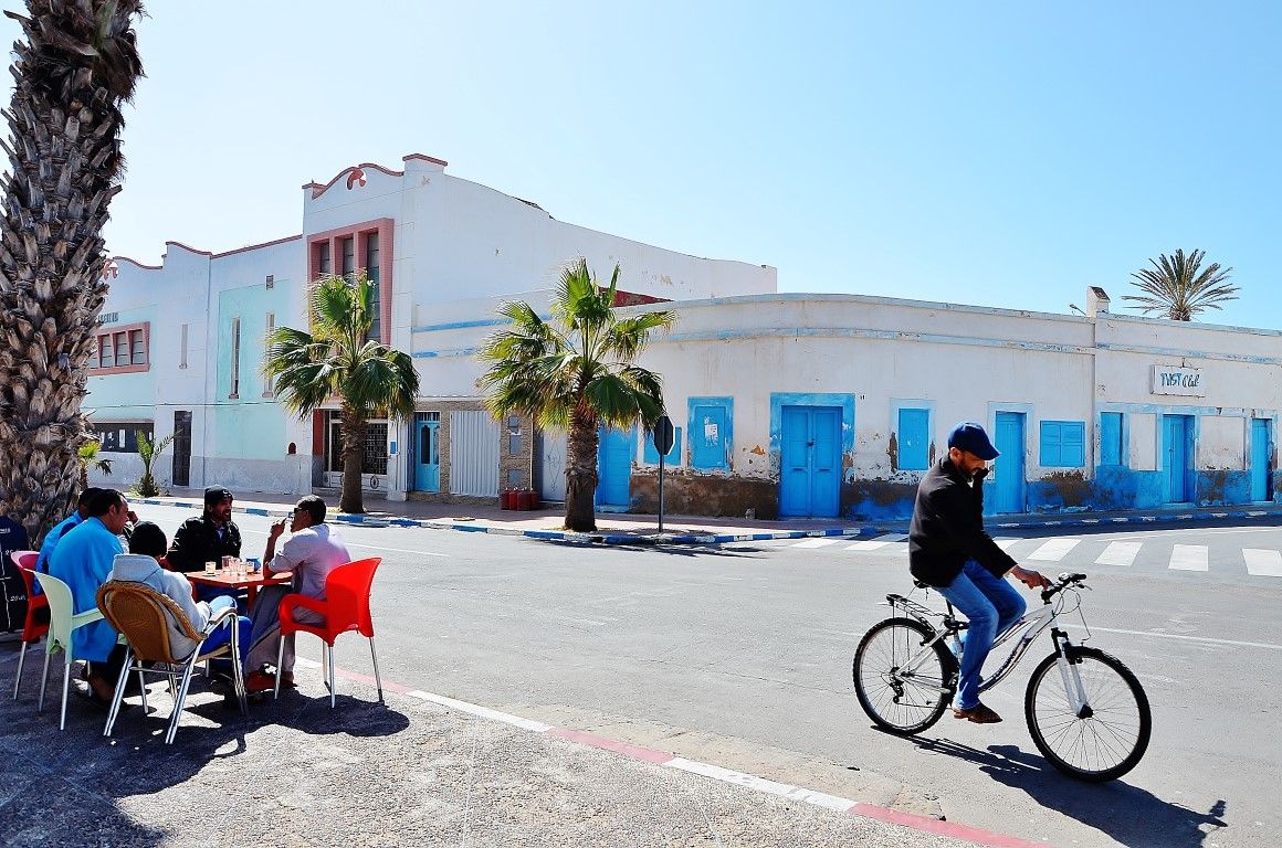 Мы же приехали в Сиди-Ифни с другой стороны, из Сахары, проделав 815 километров за один день от ущелий Дадес и касаб Уарзазата до побережья Атлантики, причем ехали вдоль алжирской границы. Выбрали чуть более долгий, но интересный путь. В этот день я в очередной раз понял, сколь важно ездить с попутчиками, умеющими водить автомобиль. Накануне спал очень плохо, зверски замерзал в отеле в горах, см. Такого не может быть, мы в шоке! и за руль с утра сел абсолютно "никакой". Точно бы не осилил почти тысячу километров через горы, серпантины, песчаные дюны и просто разбитые дороги крайнего юга Марокко. Мы надеялись, что хотя бы в километре от алжирской границы не встретим туристов, но ошибались! Даже там были европейские байкеры, двигавшиеся в сторону Западной Сахары и Мавритании, чего и говорить туризм в Марокко - большой бизнес.