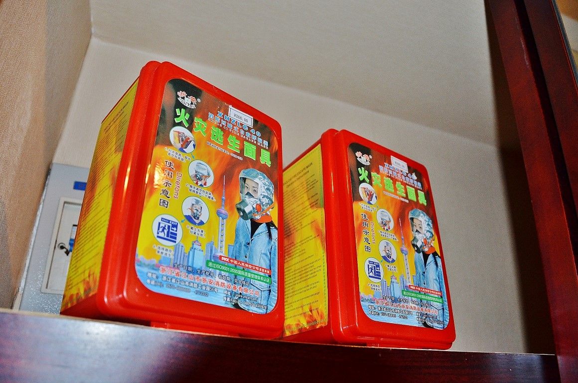 Зачем в номерах противогазы, да еще и по 200 юаней (35 долларов) мне неведомо. Допустим, что случилась война и на Китай обрушились ракеты с химическими боеголовками. Все вокруг заражено, страна разрушена и отравлена. Кому в таком случае платить 200 юаней за противогаз?